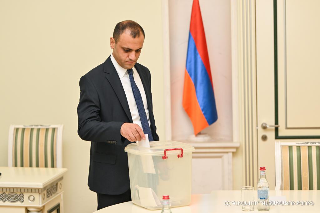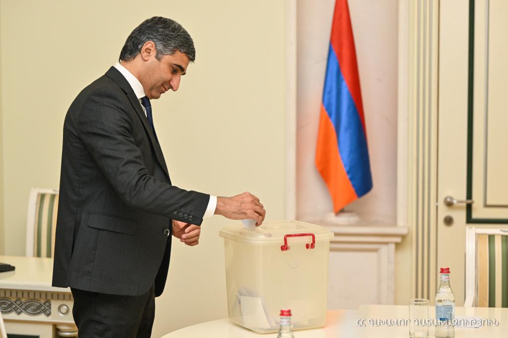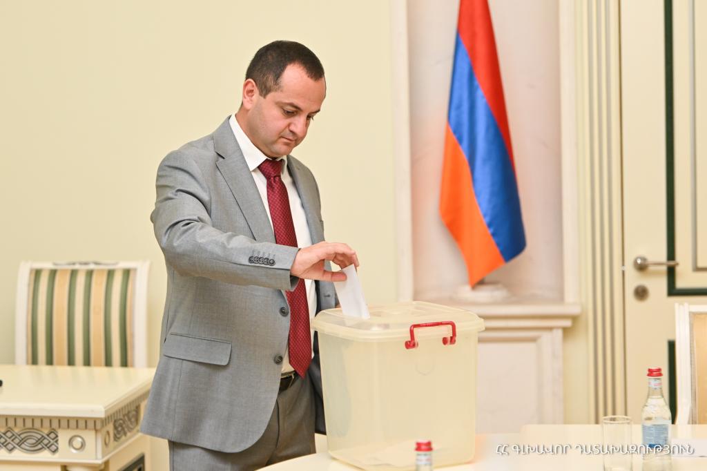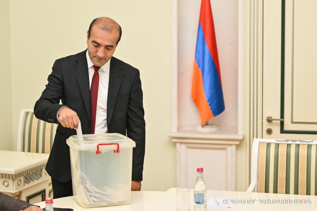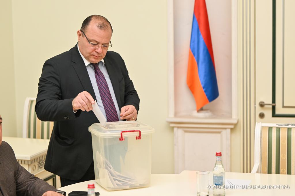Փակ գաղտնի քվեարկությունը կազմակերպելու և անցկացնելու նպատակով՝ նիստի 39 մասնակիցները ձայների պարզ մեծամասնությամբ ընտրել են Հաշվիչ հանձնաժողովի երեք անդամ: