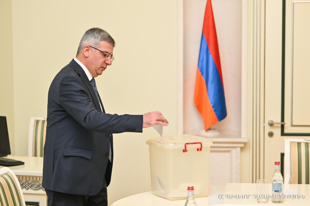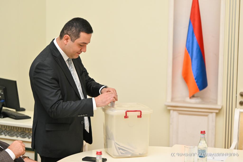 Փակ գաղտնի քվեարկությունը կազմակերպելու և անցկացնելու նպատակով՝ նիստի 39 մասնակիցները ձայների պարզ մեծամասնությամբ ընտրել են Հաշվիչ հանձնաժողովի երեք անդամ: