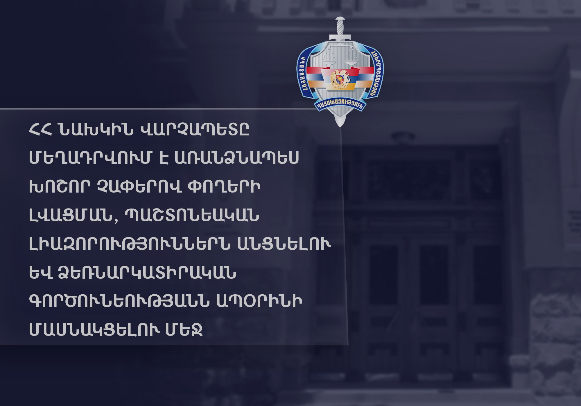 H.A., the former Prime Minister of the RA, being an official occupying a public post since 2006 to 8 September of 2016, abused his official authority and opposing to the prohibition of participation in entrepreneurial activity, took part in the management of “Avazahatik” LLC, a company engaged in sand mining, through proxies and legalized in particularly large properties procured through crime in the result of the above-mentioned activity.